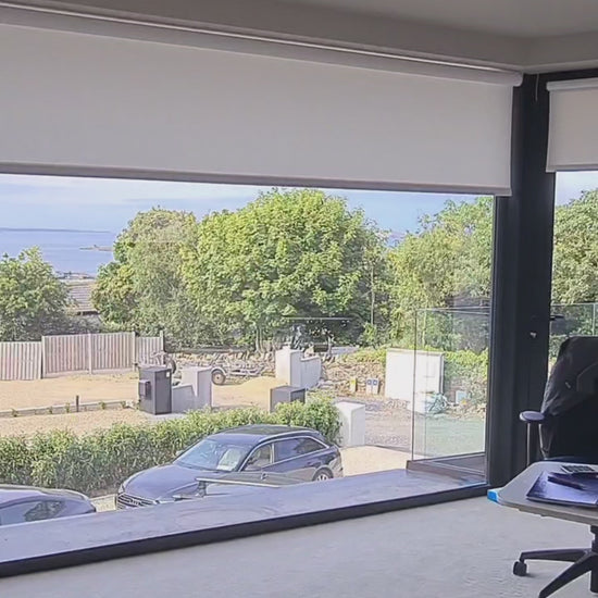 Our Motorised White Blackout Roller Blinds, powered by Somfy, offer smooth wireless operation, total darkness, and a premium made-to-measure finish. Perfect for bedrooms, living rooms, home cinemas, nurseries, and any space where blackout is essential.